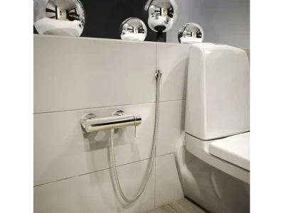 شیر توالت روکار: همانطور که از نامش پیداست، روی سطح دیوار نصب میشود و قسمت های اصلی آن قابل مشاهده است. نصب شیر توالت روکار به نسبت توکار بسیار سادهتر بوده و نیاز به تخصص کمتری دارد. همچنین در صورت بروز مشکل، دسترسی به قطعات شیر توالت روکار برای تعمیر یا تعویض بسیار راحتتر است. به طور کلی، شیر توالتهای روکار نسبت به مدلهای توکار قیمت پایینتری دارند.
