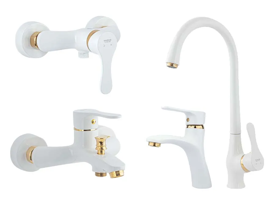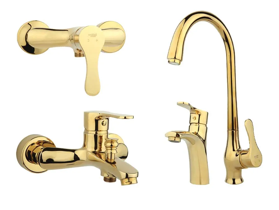 این ست شیرآلات شامل شیر ظرفشویی، شیر روشویی، شیر توالت و شیر حمام میباشد |