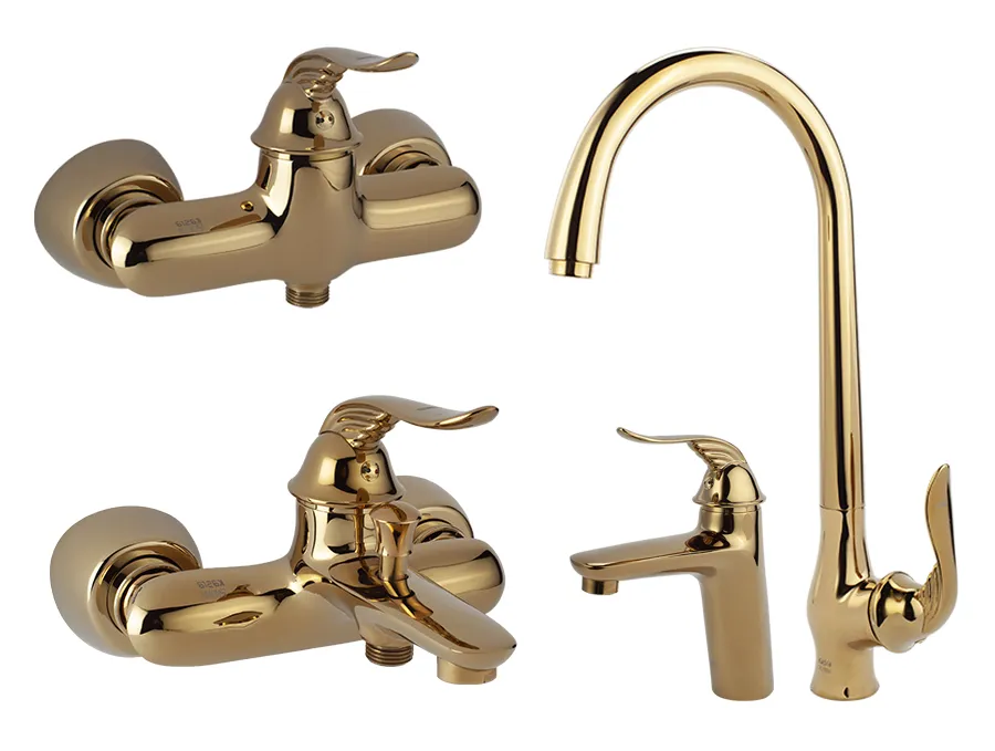 این ست شیرآلات شامل شیر ظرفشویی،شیر روشویی،شیر توالت و شیر حمام میباشد ,ضخامت آبکاری 20 میکرون ,کارتریج سرامیکی آلمانی |
