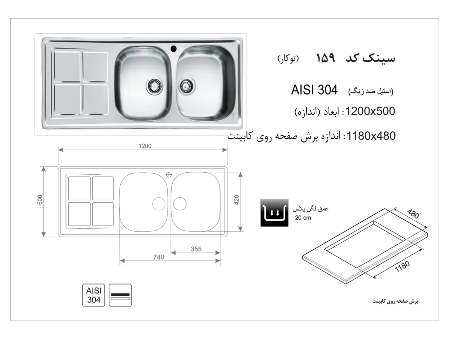 دسته: سینک ظرفشویی, سینک اخوان, سینک توکار, سینک دو لگن