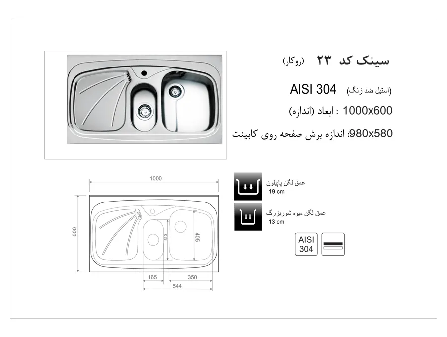 دسته: سینک ظرفشویی, سینک اخوان, سینک دو لگن, سینک روکار