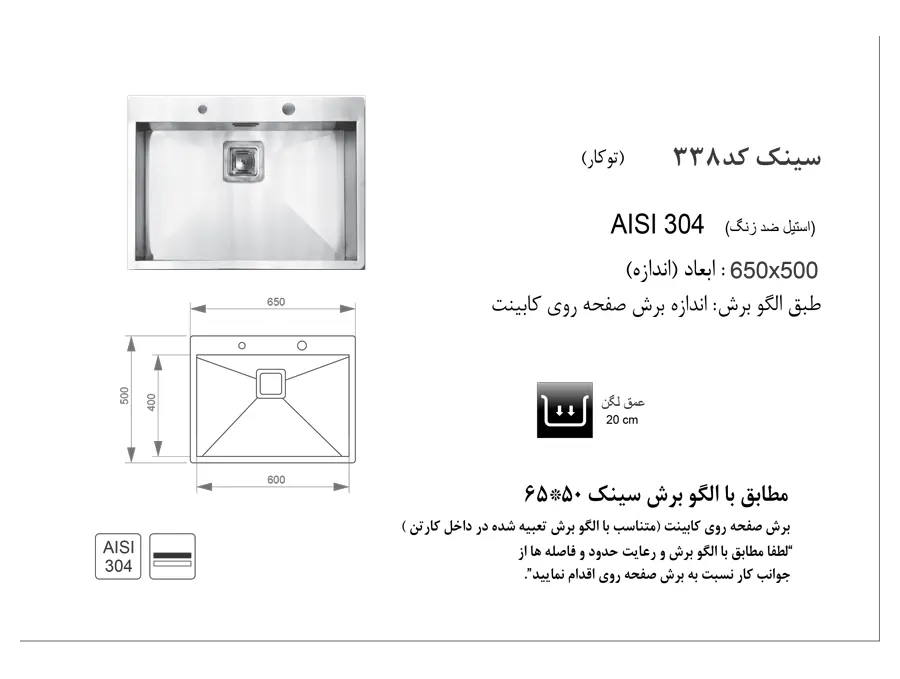 دسته: سینک ظرفشویی, سینک اخوان, سینک تک لگن, سینک توکار