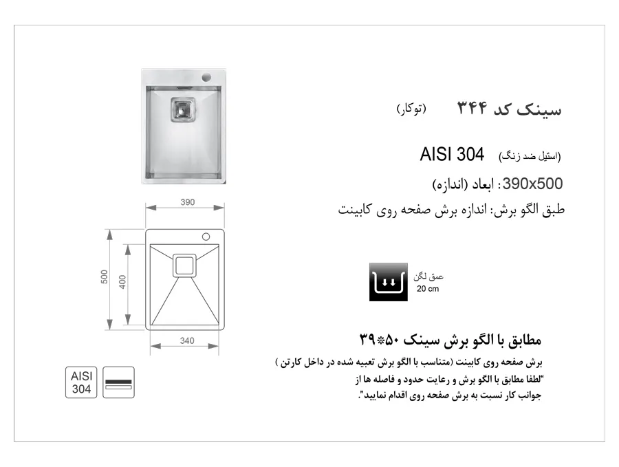 دسته: سینک ظرفشویی, سینک اخوان, سینک تک لگن, سینک توکار
