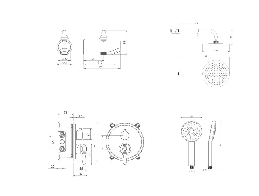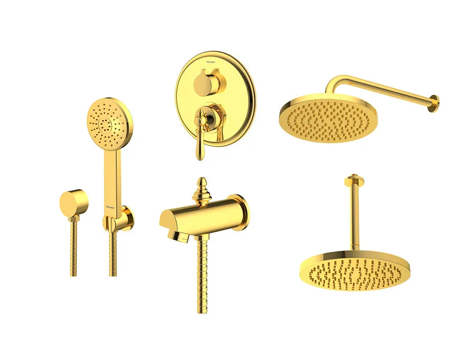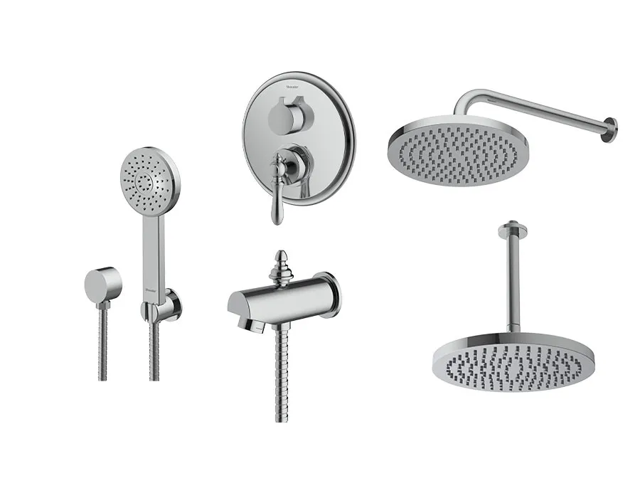– شیر توکار حمام شودر تیپ چهار شامل : پلیت، سر دوش ثابت، بازویی سقفی، سردوش متحرک و آبریز میباشد.