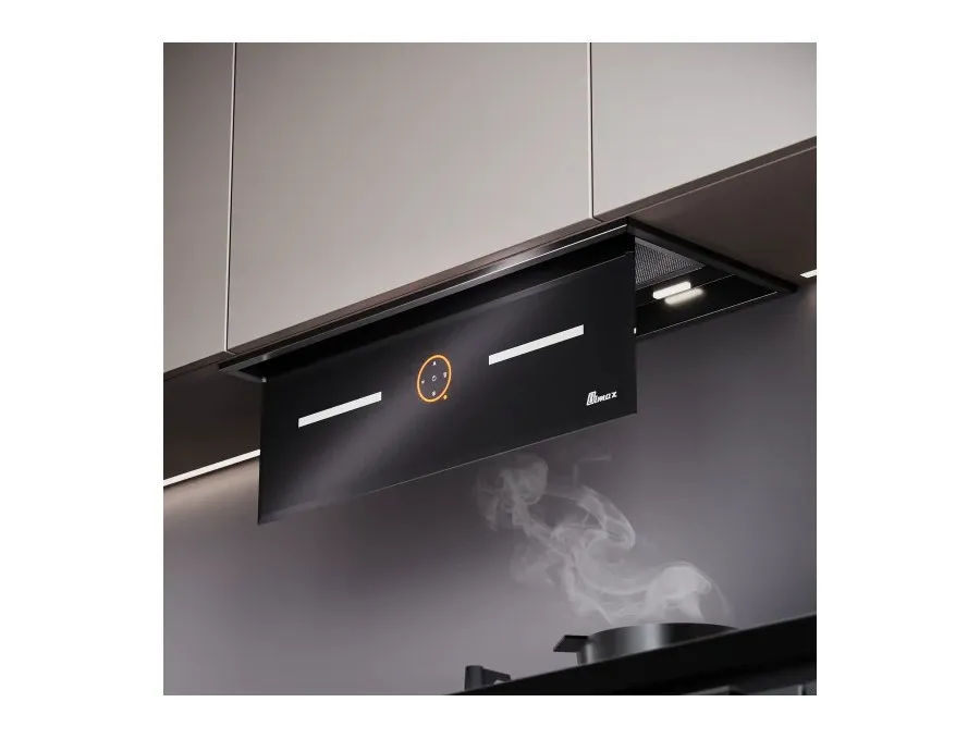 بدنه فولادی با شیشه سکوریت ,قابلیت نصب فیلتر ذغالی ,ارتفاع نصب هود از سطح کابینت 70 سانتیمتر ,سنسور دود، گاز و حرارت ,مجهز به تایمر ,دارای ۲ عدد فیلتر آلومینیومی ۳ لایه ,سیستم ایمنی ترموگارد ,۴ عدد لامپ کم مصرف SMD دو وات |