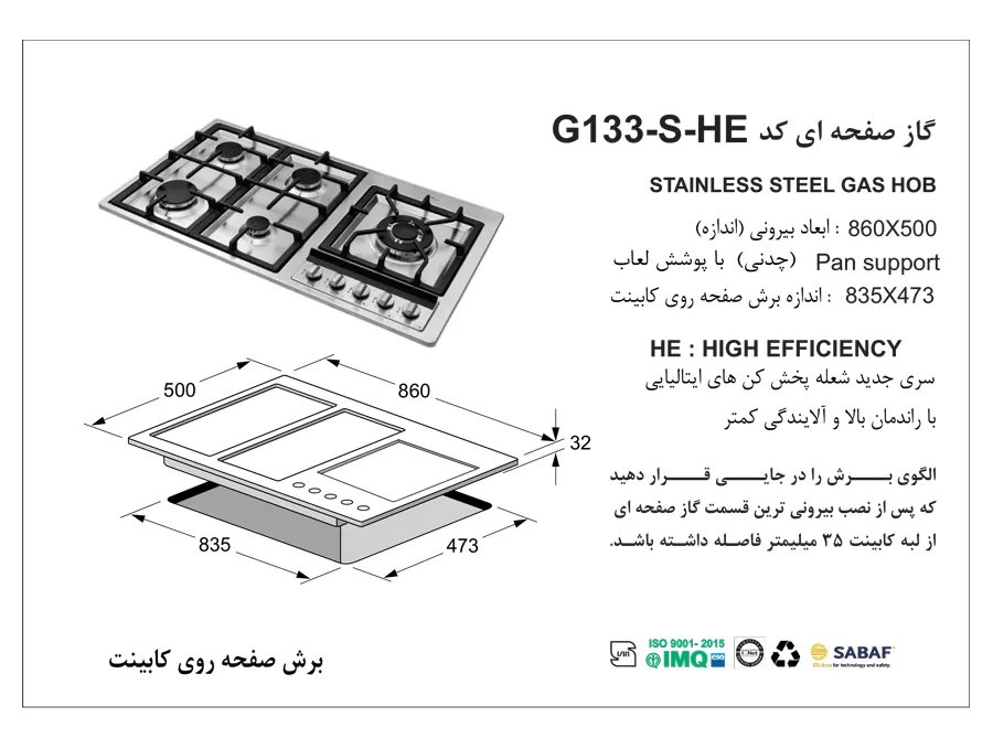 ابعاد گاز رومیزی |