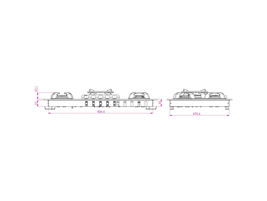 صفحه شیشه سکوریت – توان حرارتی 11.3Kw شعله ها – شیر کنترل ساباف – سرشعله ایتالیایی (ساباف) – دارای ولوم آلومنیومی – دارای شبکه چدنی لعابدار – لوازم همراه محصول: تبدیل پلوپز ، تبدیل قهوه جوش ، سپر حرارتی ولوم |