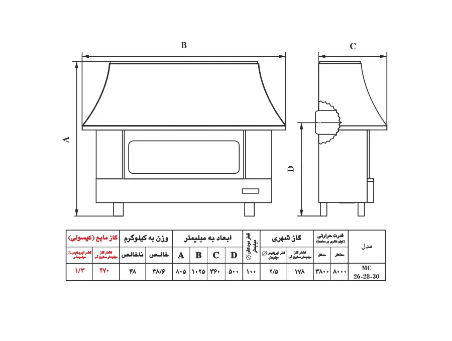 بخاری شومینه ای نیک کالا مدل زرین MC28