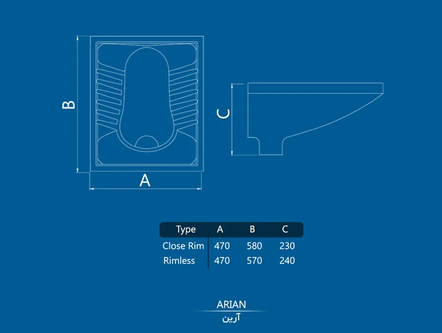 توالت ایرانی چینی کرد مدل آرین زمینی