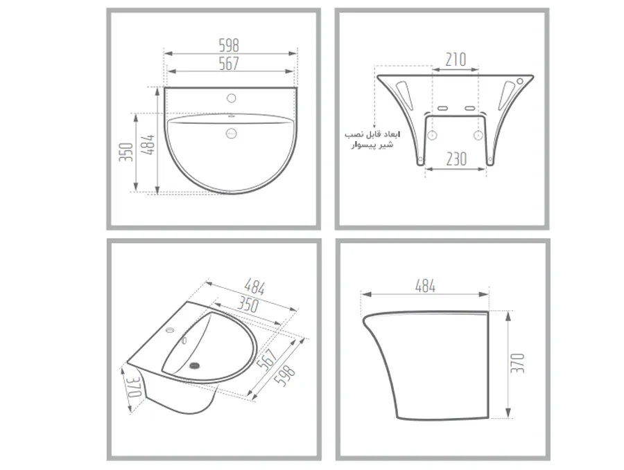 مشخصات روشویی دیواری مروارید مدل سیلویا وال هنگ
