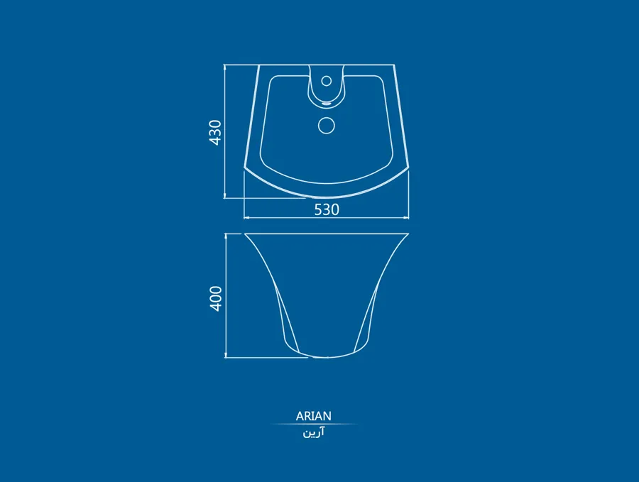 مشخصات روشویی دیواری چینی کرد مدل آرین