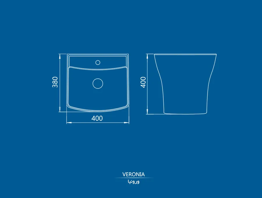 مشخصات روشویی دیواری چینی کرد مدل ورونیا
