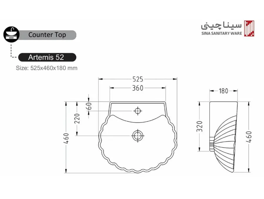 مشخصات سنگ روشویی روسنگی سیناچینی مدل آرتمیس