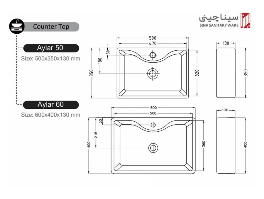 مشخصات سنگ روشویی روسنگی سینا چینی مدل آیلار