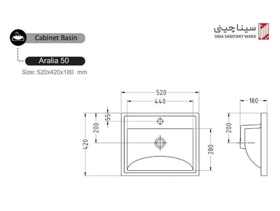 مشخصات سنگ روشویی روکابینتی سینا چینی مدل آرالیا