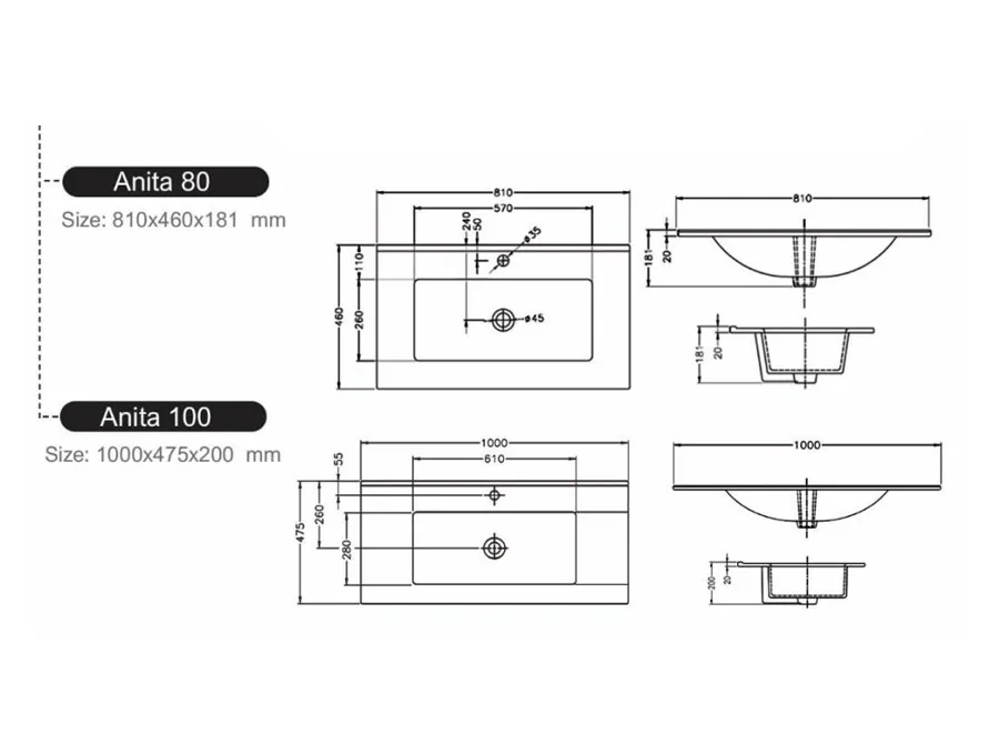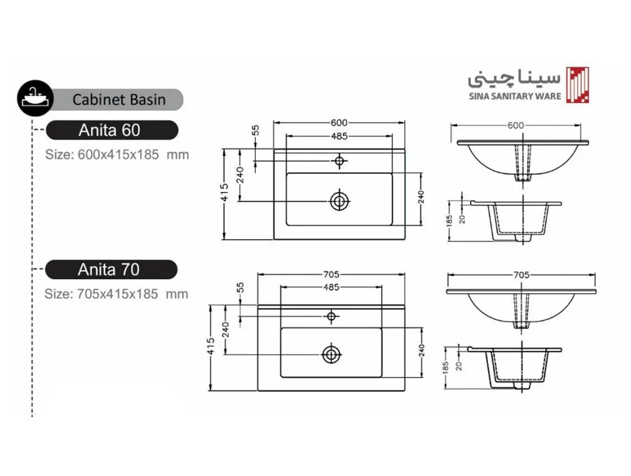 مشخصات سنگ روشویی روکابینتی سینا چینی مدل آنیتا