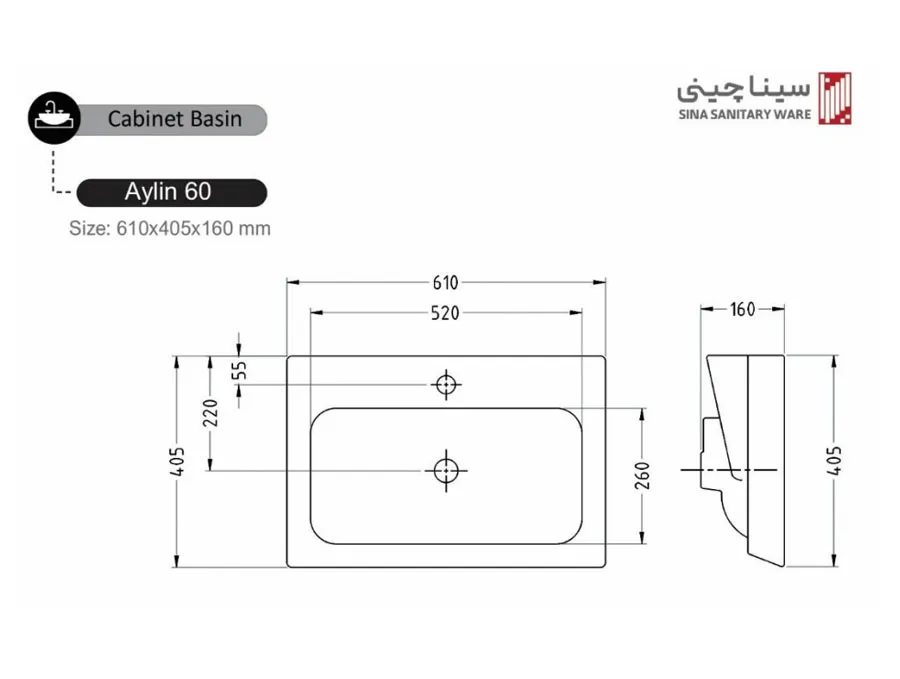 روشویی روکابینتی سینا چینی مدل آیلین