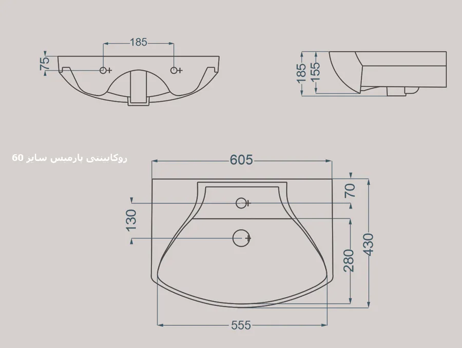 سنگ روشویی روکابینتی گلسار مدل پارمیس