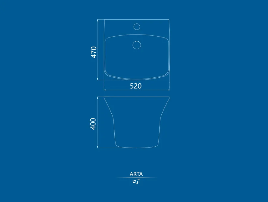 مشخصات روشویی وال هنگ چینی کرد مدل آرتا