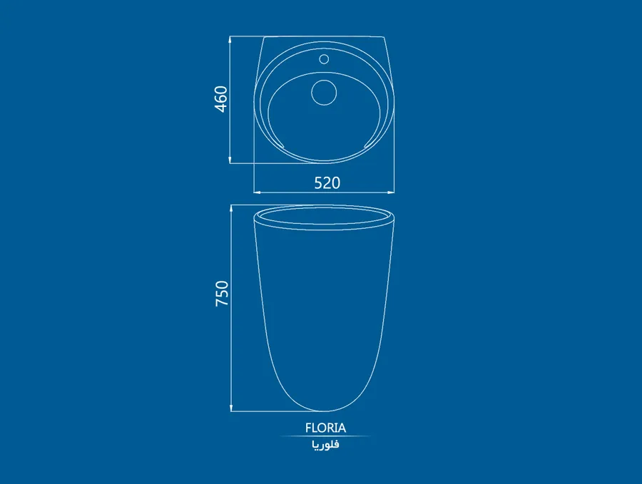 مشخصات روشویی وال هنگ چینی کرد مدل فلوریا