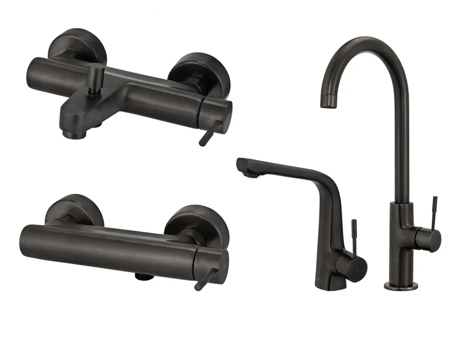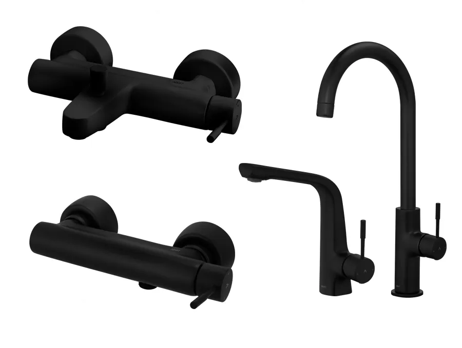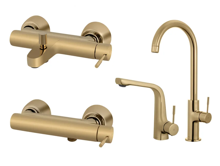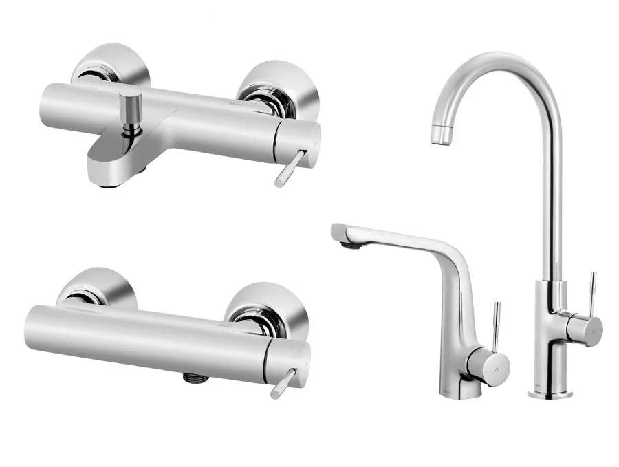 این ست شیرآلات شامل شیر ظرفشویی، شیر روشویی، شیر توالت و شیر حمام میباشد |