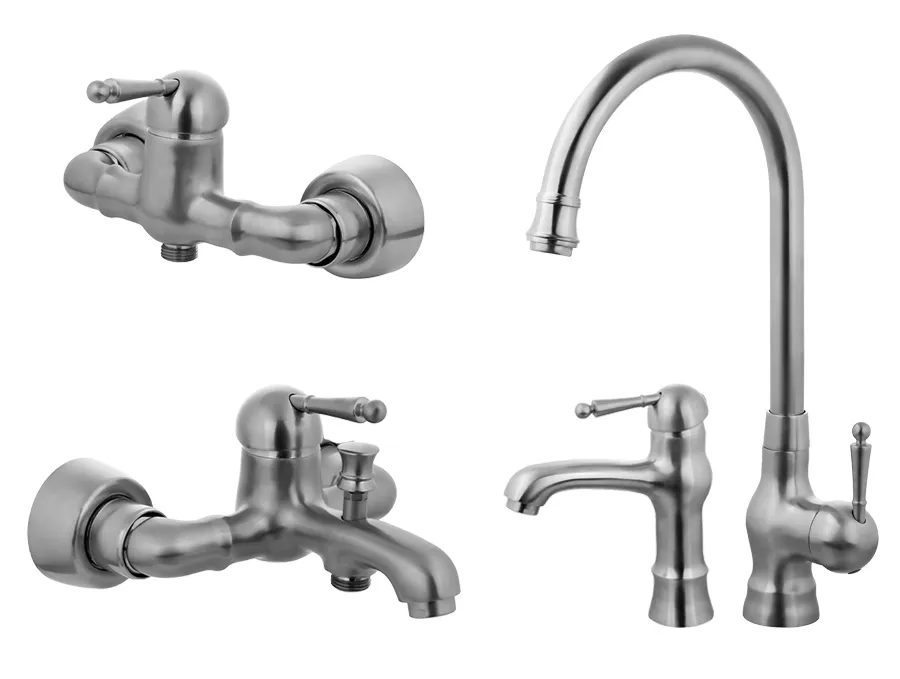 این ست شیرآلات شامل شیر ظرفشویی، شیر روشویی، شیر توالت و شیر حمام میباشد |