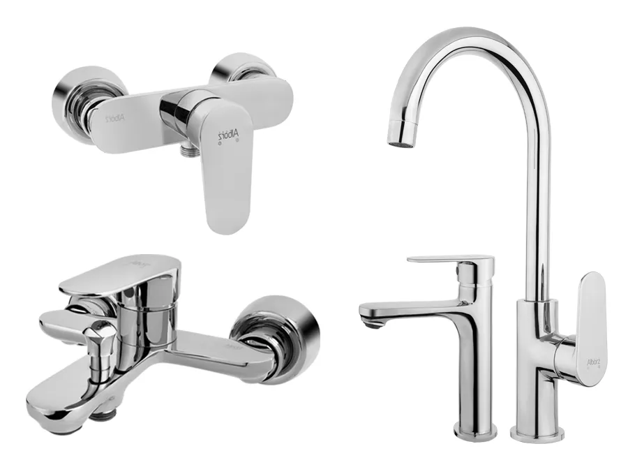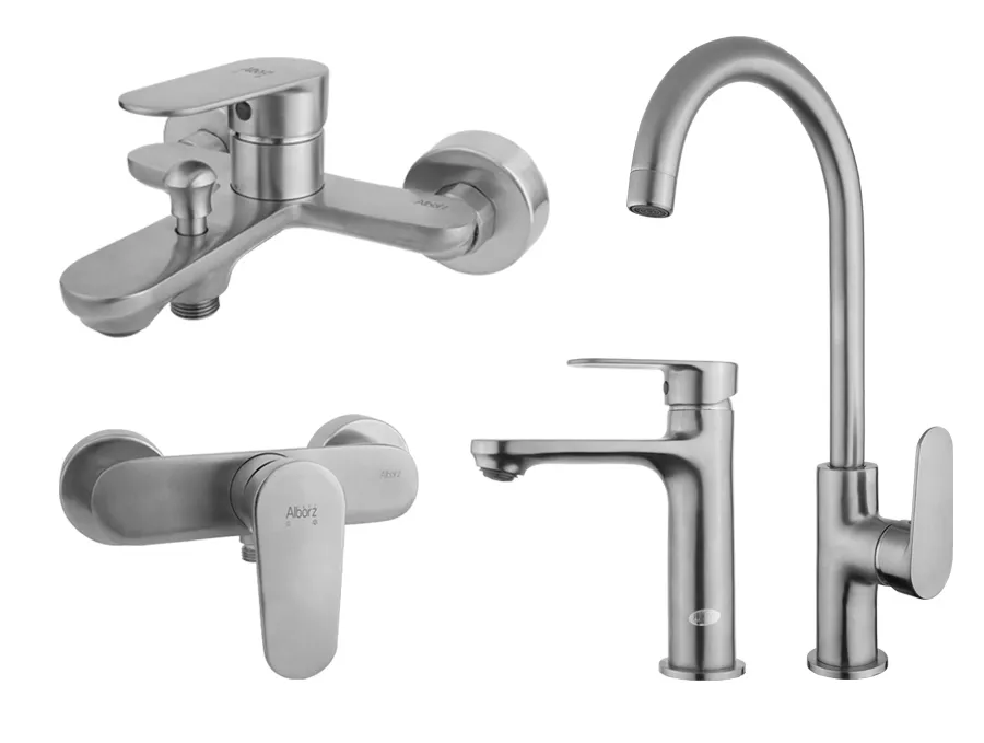 این ست شیرآلات شامل شیر ظرفشویی، شیر روشویی، شیر توالت و شیر حمام میباشد |