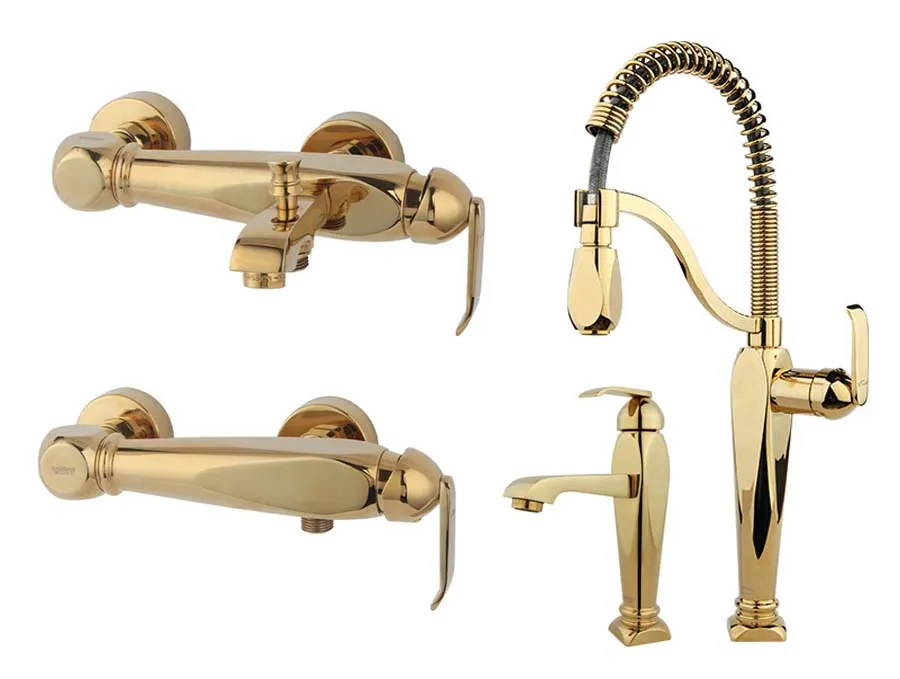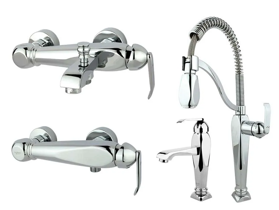 این ست شیرآلات شامل شیر ظرفشویی، شیر روشویی، شیر توالت و شیر حمام میباشد |