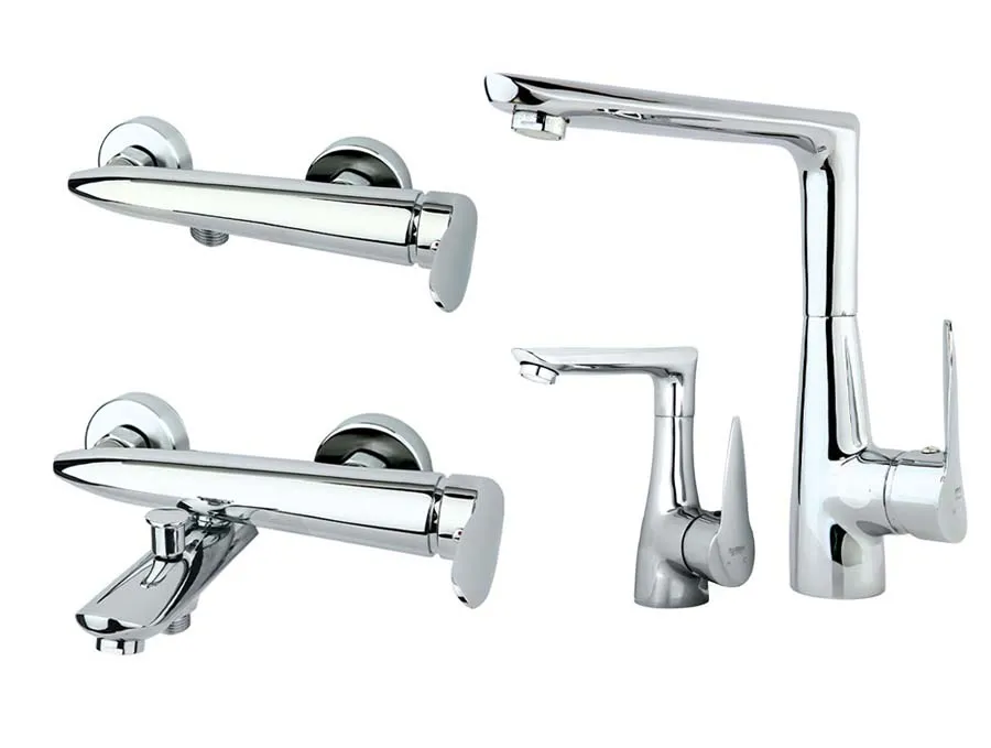 این ست شیرآلات شامل شیر ظرفشویی، شیر روشویی، شیر توالت و شیر حمام میباشد |