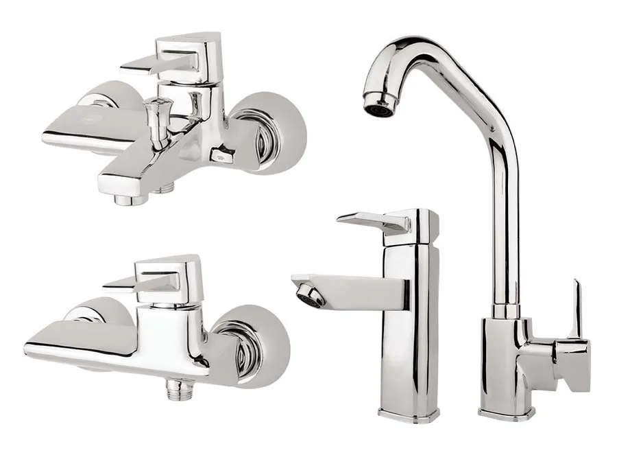 این ست شیرآلات شامل شیر ظرفشویی، شیر روشویی، شیر توالت و شیر حمام میباشد |