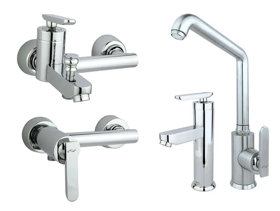 این ست شیرآلات شامل شیر ظرفشویی، شیر روشویی، شیر توالت و شیر حمام میباشد |