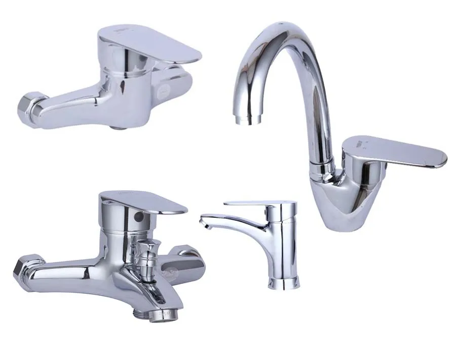 این ست شیرآلات شامل شیر ظرفشویی، شیر روشویی، شیر توالت و شیر حمام میباشد |