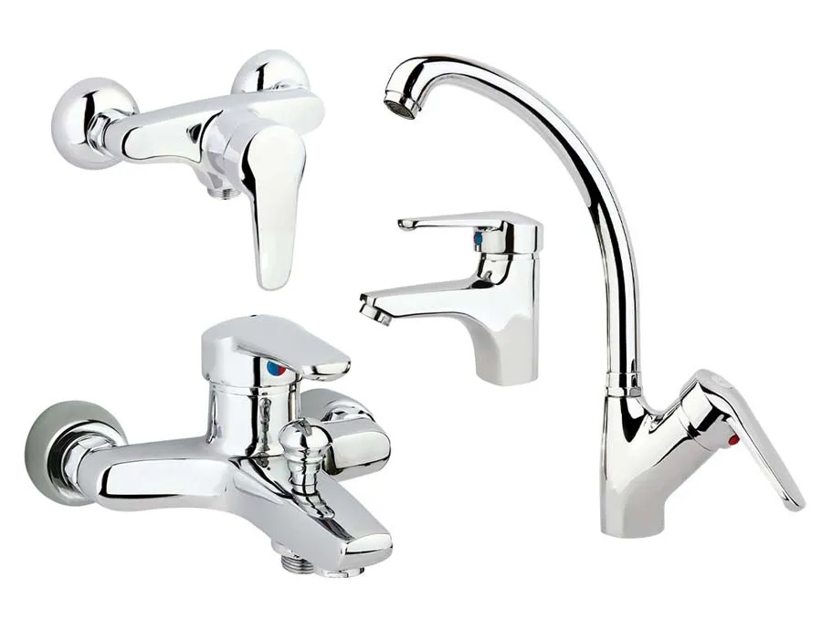 این ست شیرآلات شامل شیر ظرفشویی، شیر روشویی، شیر توالت و شیر حمام میباشد |