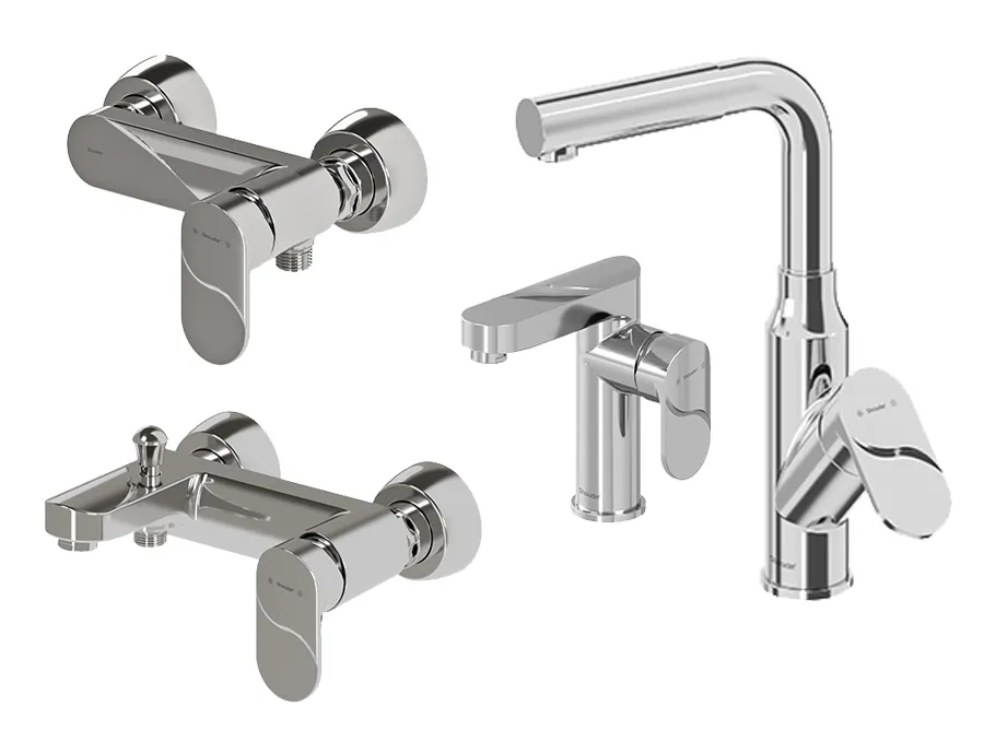 این ست 4 تکه شیرآلات شامل شیر ظرفشویی، شیر روشویی، شیر توالت و شیر حمام میباشد |