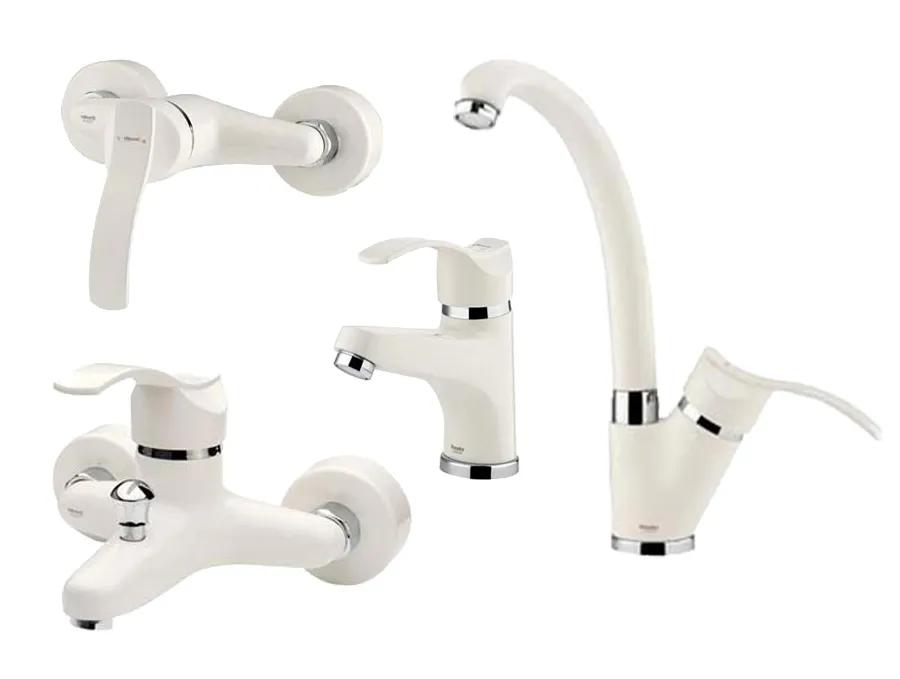 این ست 4 تکه شیرآلات شامل شیر ظرفشویی، شیر روشویی، شیر توالت و شیر حمام میباشد |