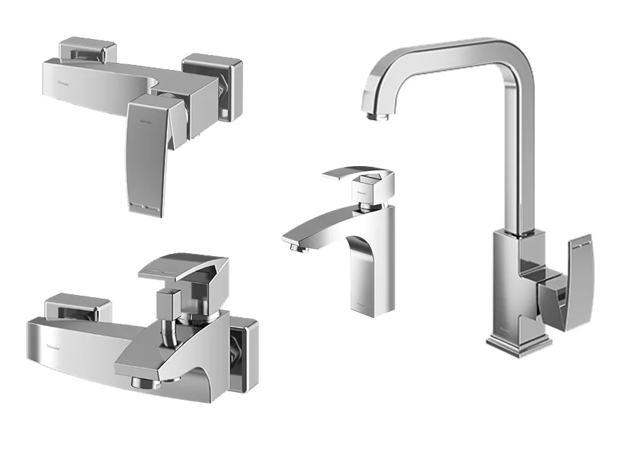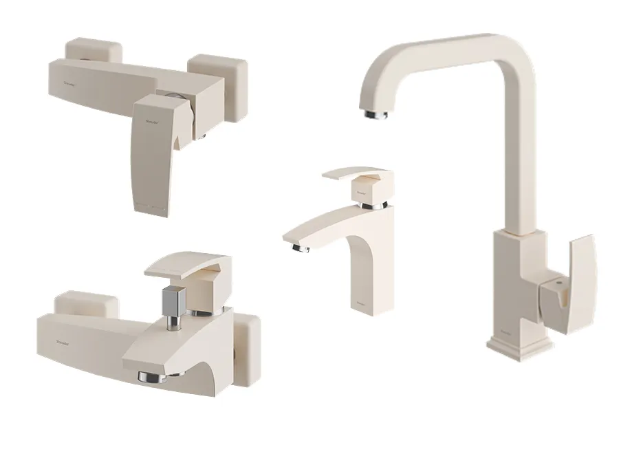 این ست شیرالات شامل شیر ظرفشویی، شیر روشویی، شیر توالت و شیر حمام میباشد |