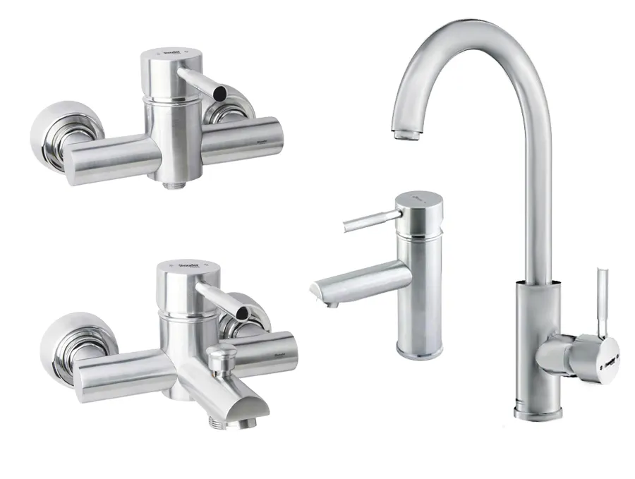 این ست 4 تکه شیرآلات شامل شیر ظرفشویی، شیر روشویی، شیر توالت و شیر حمام میباشد |