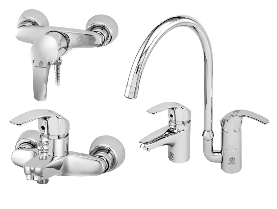 این ست چهار تکه شیرآلات شامل شیر ظرفشویی، شیر روشویی، شیر توالت و شیر حمام میباشد |