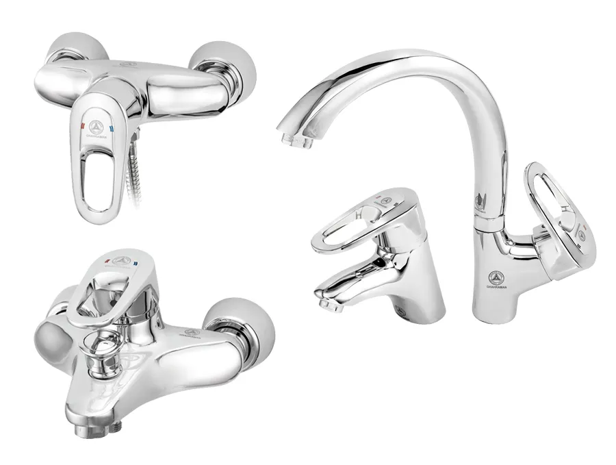 این ست چهار تکه شیرآلات شامل شیر ظرفشویی، شیر روشویی، شیر توالت و شیر حمام میباشد |