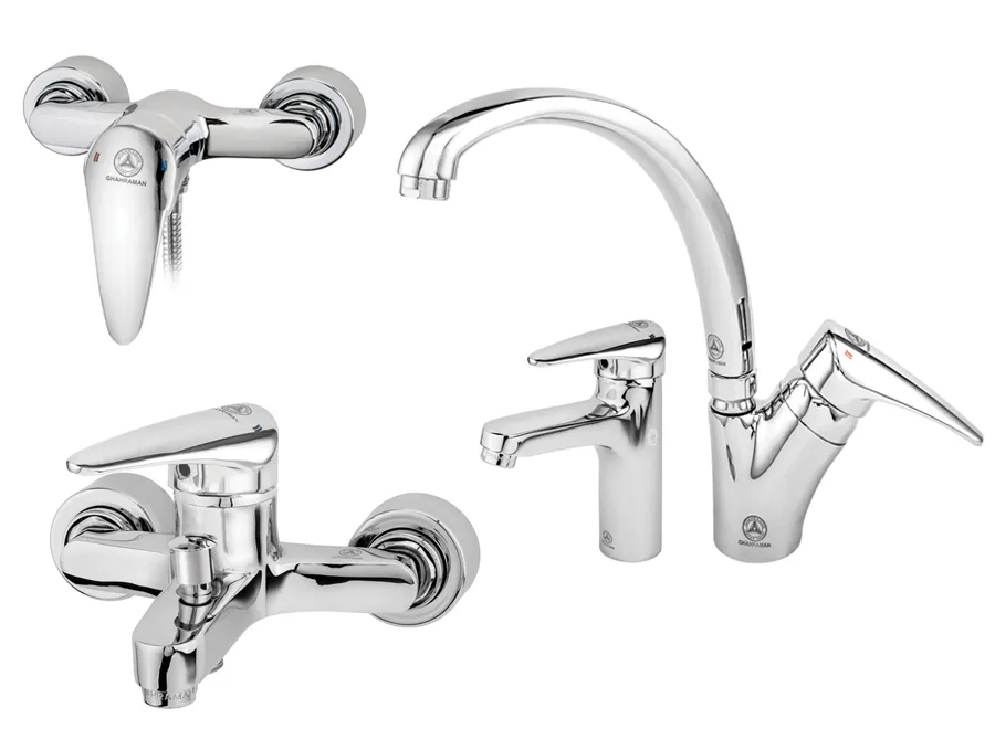 این ست چهار تکه شیرآلات شامل شیر ظرفشویی، شیر روشویی، شیر توالت و شیر حمام میباشد |