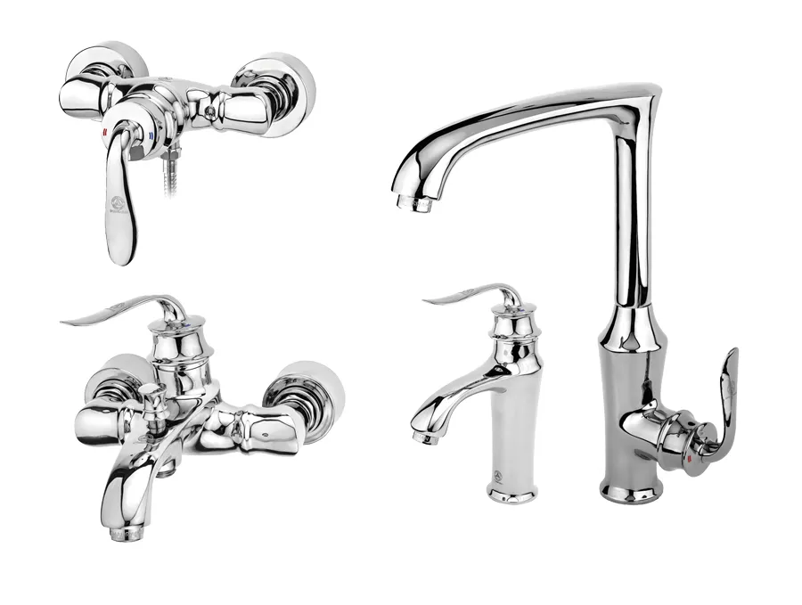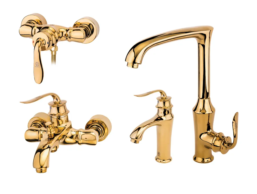 این ست 4 تکه شیرآلات شامل شیر ظرفشویی، شیر روشویی، شیر توالت و شیر حمام میباشد |