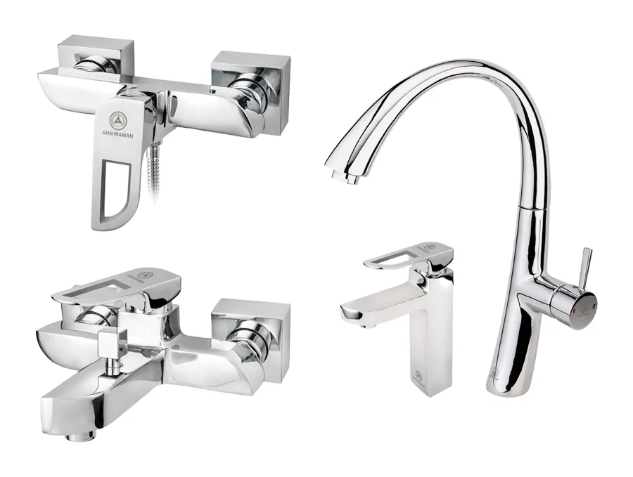 این ست چهار تکه شیرآلات شامل شیر ظرفشویی، شیر روشویی، شیر توالت و شیر حمام میباشد |