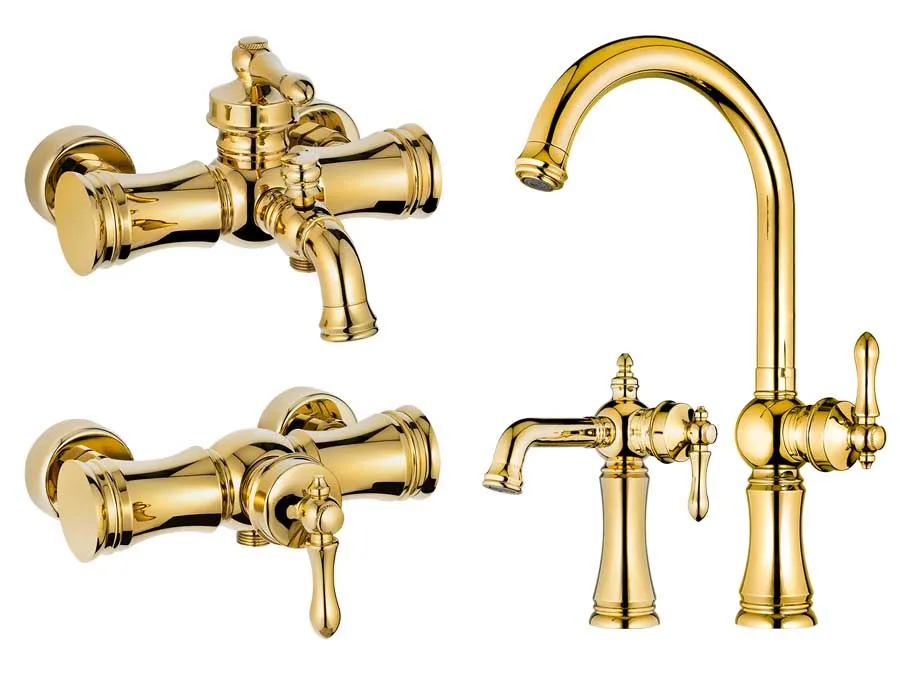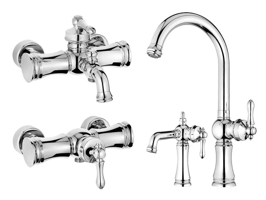 این ست شیرآلات شامل شیر ظرفشویی، شیر روشویی، شیر توالت و شیر حمام میباشد ,ضخامت آبکاری 16 میکرون |