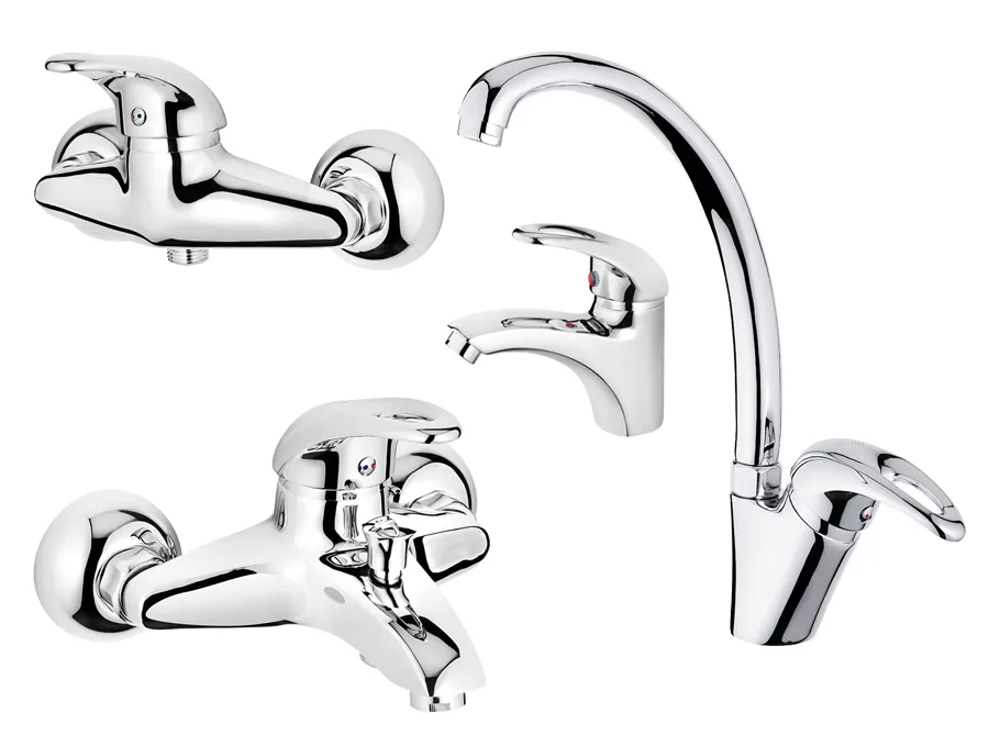 این ست شیرآلات شامل شیر ظرفشویی، شیر روشویی، شیر توالت و شیر حمام میباشد ,ضخامت آبکاری 16 میکرون |