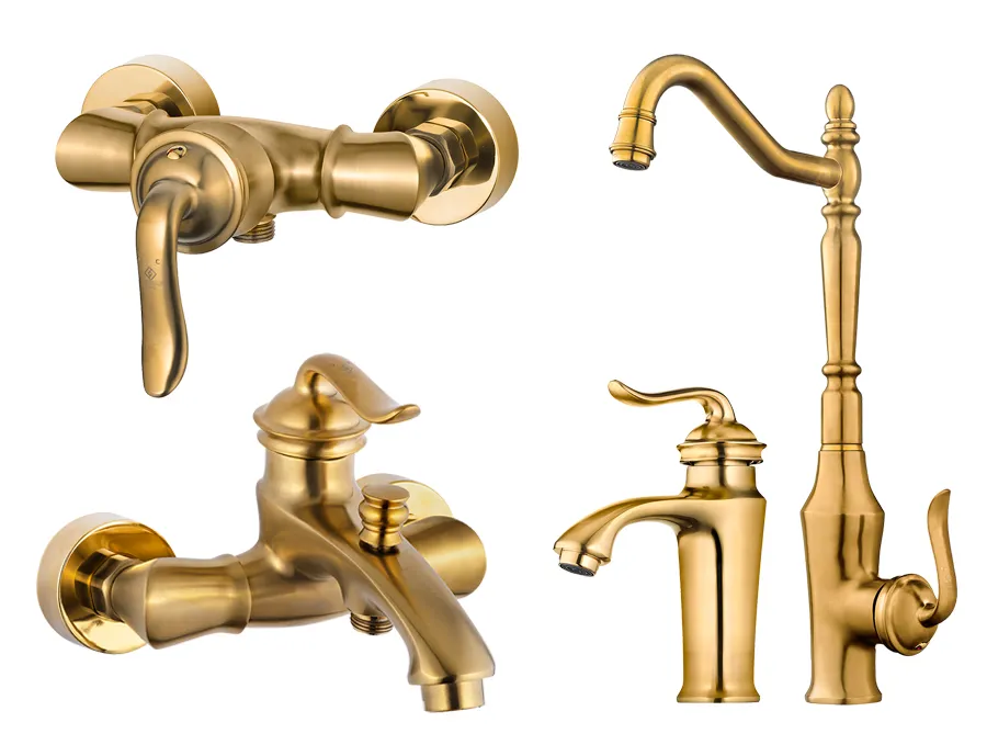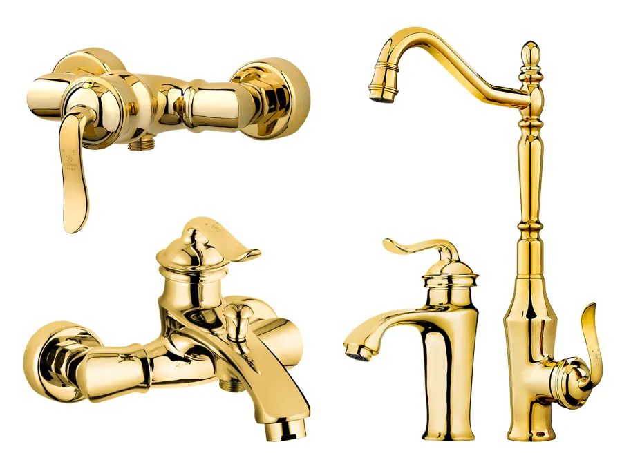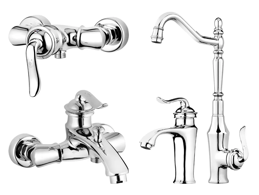 این ست شیرآلات شامل شیر ظرفشویی، شیر روشویی، شیر توالت و شیر حمام میباشد ,ضخامت آبکاری 16 میکرون |