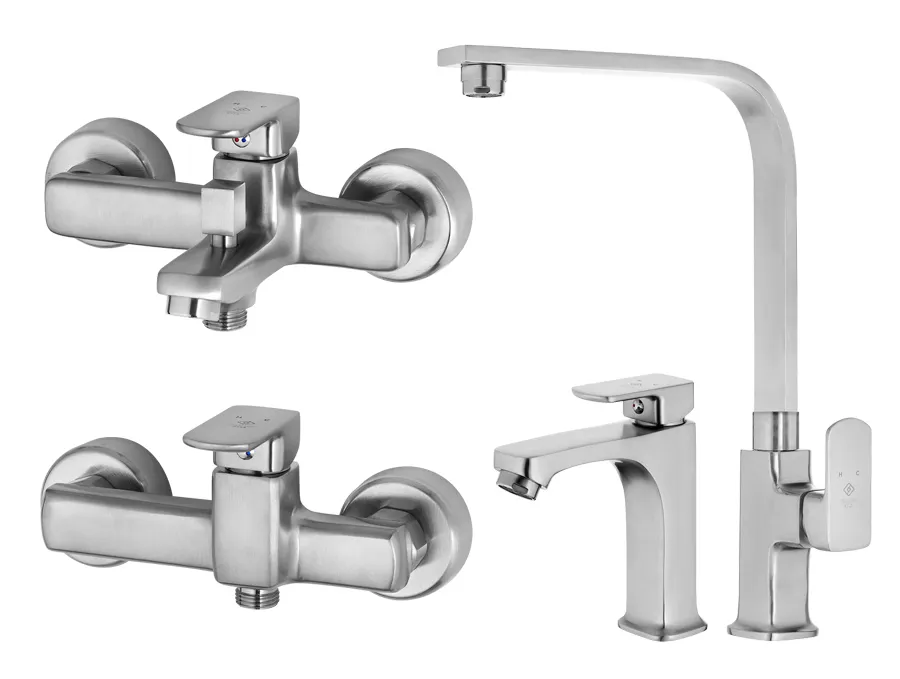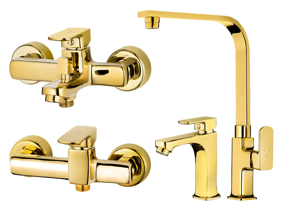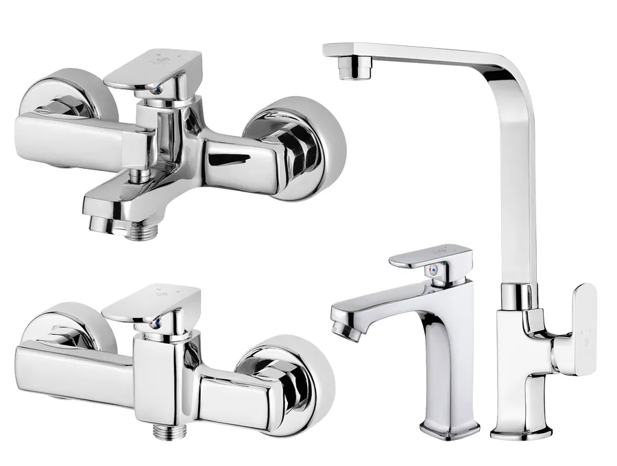 این ست شیرآلات شامل شیر ظرفشویی، شیر روشویی، شیر توالت و شیر حمام میباشد ,ضخامت آبکاری 16 میکرون |