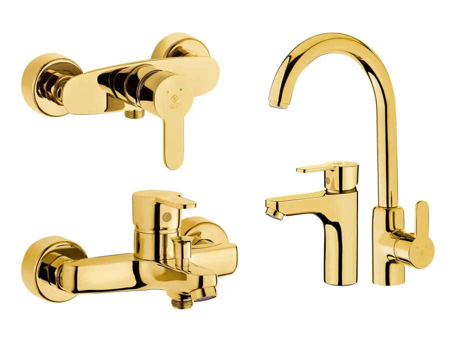 این ست شیرآلات شامل شیر ظرفشویی، شیر روشویی، شیر توالت و شیر حمام میباشد ,ضخامت آبکاری 16 میکرون |