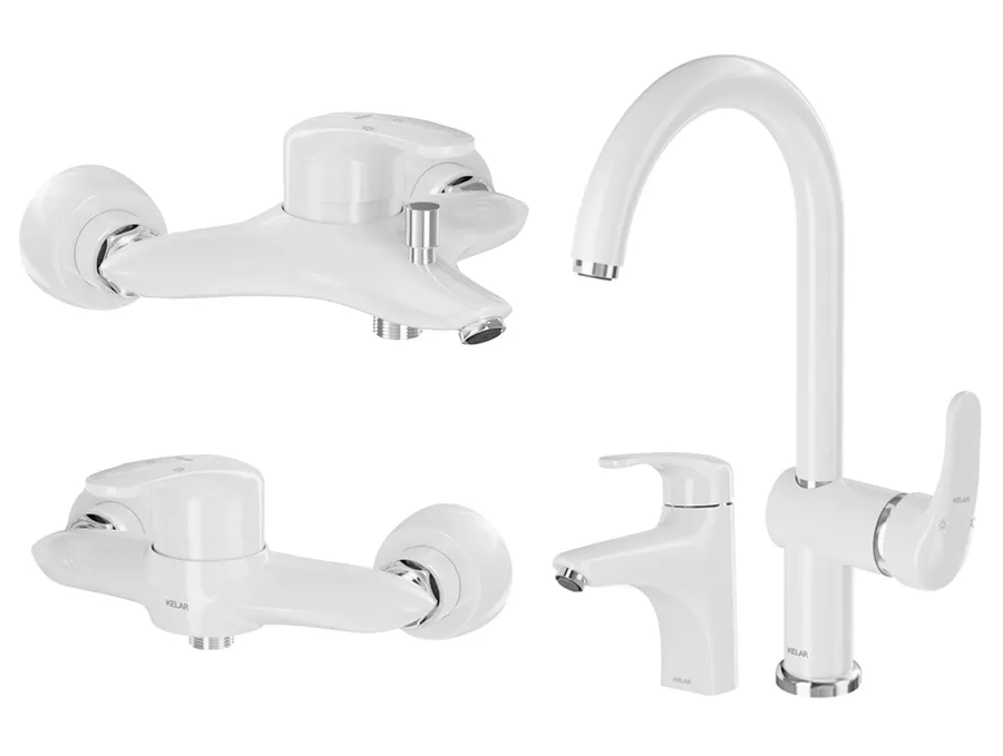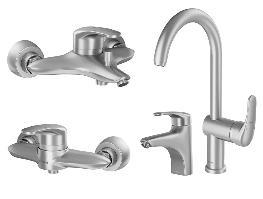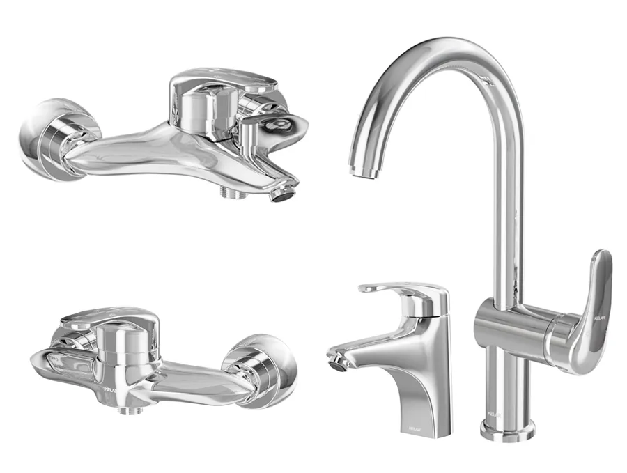 این ست شیرآلات شامل شیر ظرفشویی، شیر روشویی، شیر توالت و شیر حمام میباشد |
