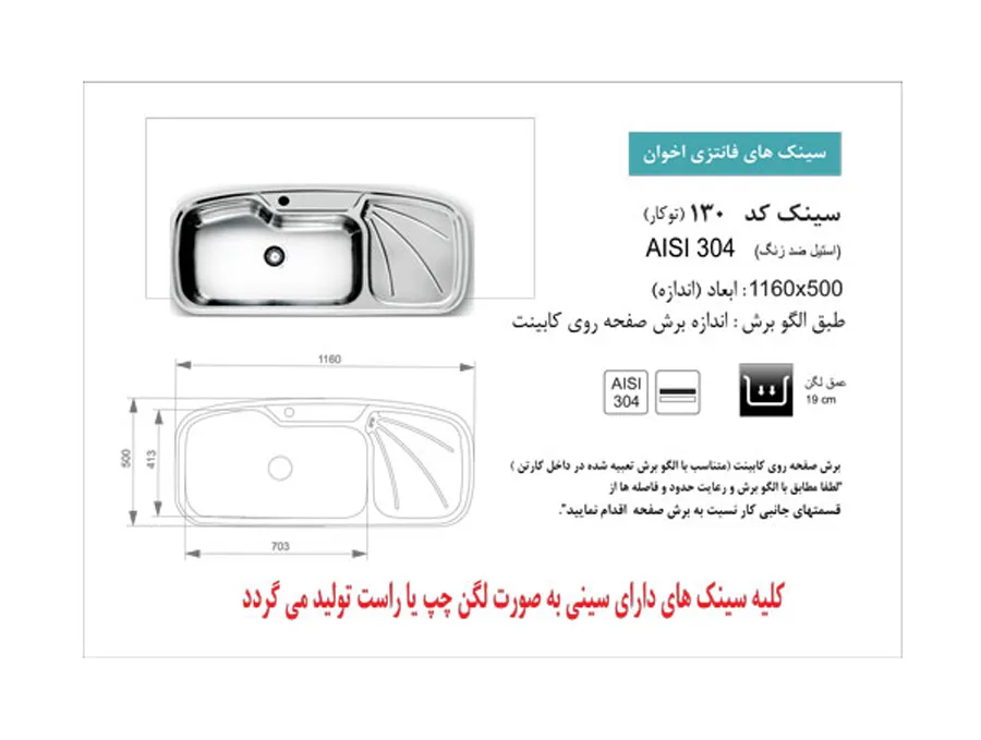 دسته: سینک ظرفشویی, سینک اخوان, سینک تک لگن, سینک توکار