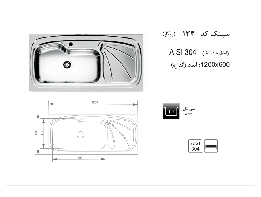 دسته: سینک ظرفشویی, سینک اخوان, سینک تک لگن, سینک روکار